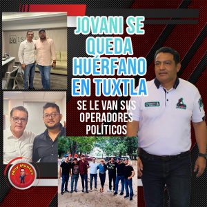 Desbandada política: Dejan solo a Jovani Salazar en Tuxtla Gutiérrez; su estructura emigra a otros aspirantes Tuxtla Gutiérrez, Chiapas. — El proyecto político de Jovani Salazar atraviesa una de sus peores crisis. En los últimos días, gran parte de su estructura ha decidido abandonar sus filas y sumarse a otros aspirantes que, aseguran, ofrecen mejores condiciones y liderazgo rumbo al próximo proceso electoral. Fuentes internas confirmaron que operadores, coordinadores de zona y simpatizantes que antes respaldaban a Jovani Salazar, ahora