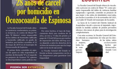 La Fiscalía General del Estado obtuvo la vinculación a proceso en contra de Élmer “N”, como presunto responsable del delito…
