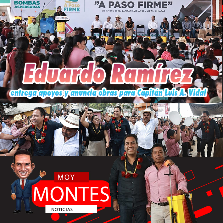 Entre muestras de cariño y aplausos, mujeres, niñas, niños, personas adultas mayores, campesinas, campesinos y representantes de los sectores productivos de Capitán Luis A. Vidal recibieron al gobernador Eduardo Ramírez Aguilar en su gira de trabajo por este municipio, donde remarcó que, tras recuperar la paz y la seguridad, el gobierno de la Nueva ERA impulsa una agenda social orientada a fortalecer el bienestar y el progreso de Chiapas.