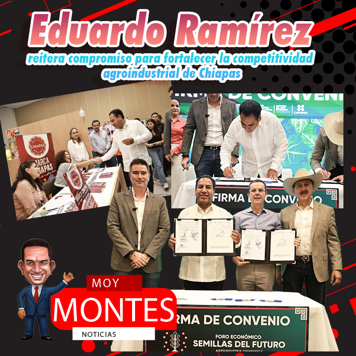 El gobernador Eduardo Ramírez Aguilar asistió al Foro Económico Semillas del Futuro, donde reiteró el compromiso del gobierno de la Nueva ERA de fortalecer el sector agroindustrial mediante el impulso a las cadenas productivas en las distintas regiones, con el fin de promover el desarrollo social y económico de Chiapas.