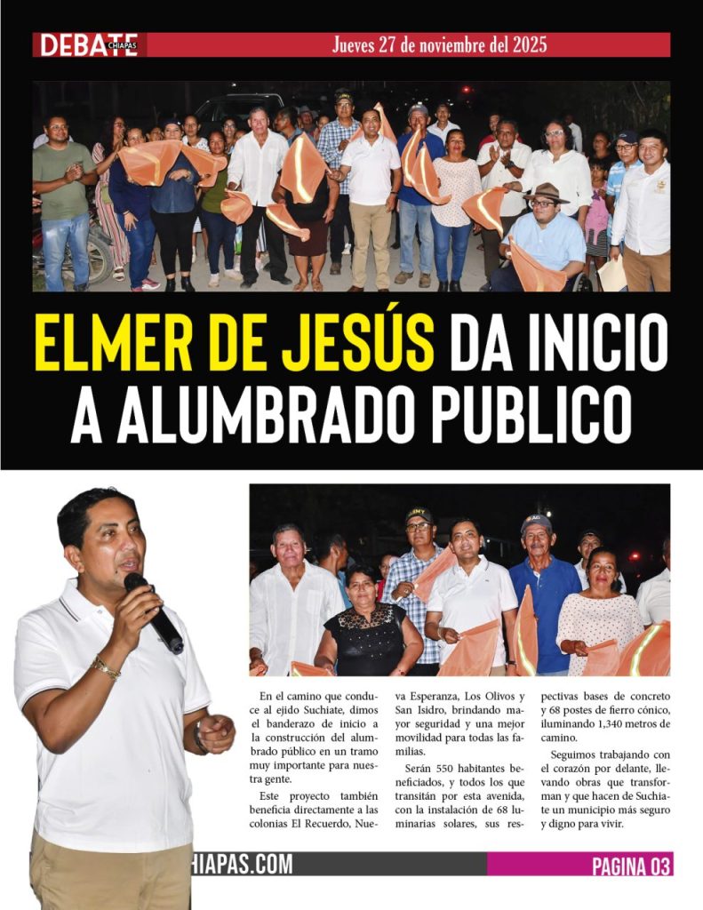 En el camino que conduce al ejido Suchiate, dimos el banderazo de inicio a la construcción del alumbrado público en un tramo muy importante para nuestra gente.