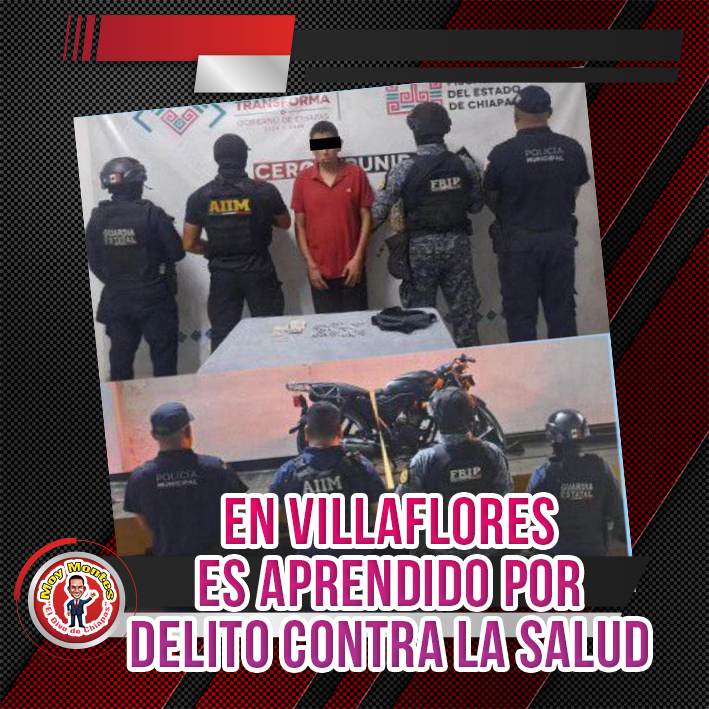 La Fiscalía General del Estado, la Secretaría de Seguridad del Pueblo y la Policía Municipal detuvieron en flagrancia de Alan “N”, alias “El Padrino”, como presunto responsable del delito contra la salud, cometido en agravio de la sociedad, por hechos ocurridos en la colonia San Miguel, del municipio de Villaflores.