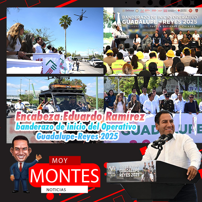 En Tuxtla Gutiérrez, el gobernador Eduardo Ramírez Aguilar dio el banderazo de inicio del Operativo Guadalupe-Reyes 2025. Señaló que el propósito es reforzar la coordinación entre las autoridades de seguridad y procuración de justicia, las Fuerzas Armadas, el sector salud, así como las instituciones estatales y municipales, con el fin de garantizar la tranquilidad y el bienestar de la población ante el incremento de la movilidad y las celebraciones decembrinas.