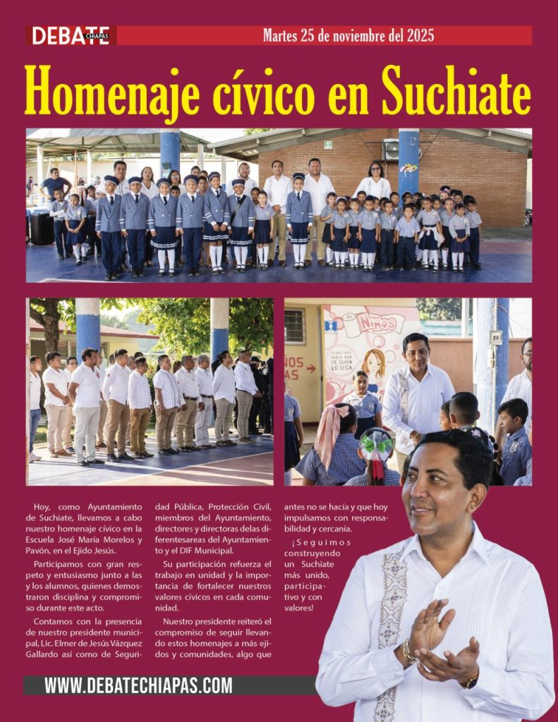 Hoy, como Ayuntamiento de Suchiate, llevamos a cabo nuestro homenaje cívico en la Escuela José María Morelos y Pavón, en el Ejido Jesús.