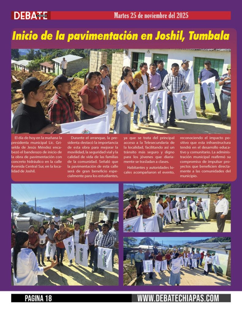El día de hoy en la mañana la presidenta municipal Lic. Griselda de Jesús Méndez encabezó el banderazo de inicio de la obra de pavimentación con concreto hidráulico en la calle Avenida Central Sur, en la localidad de Joshil.
