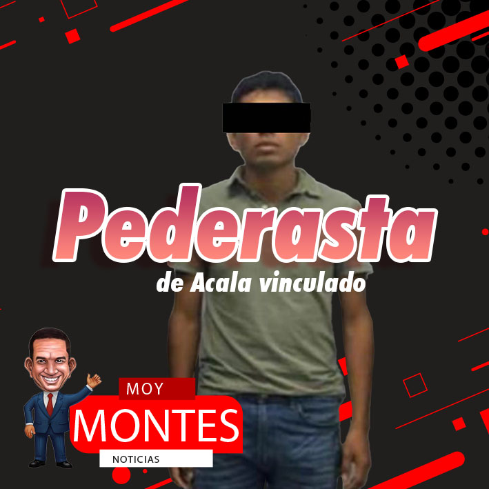 La Fiscalía General del Estado obtuvo la vinculación a proceso en contra de Ángel «N”, como presunto responsable del delito de pederastia agravada, por hechos ocurridos el 23 de noviembre de 2025 en el paraje de la colonia Albores, del municipio de Acala.