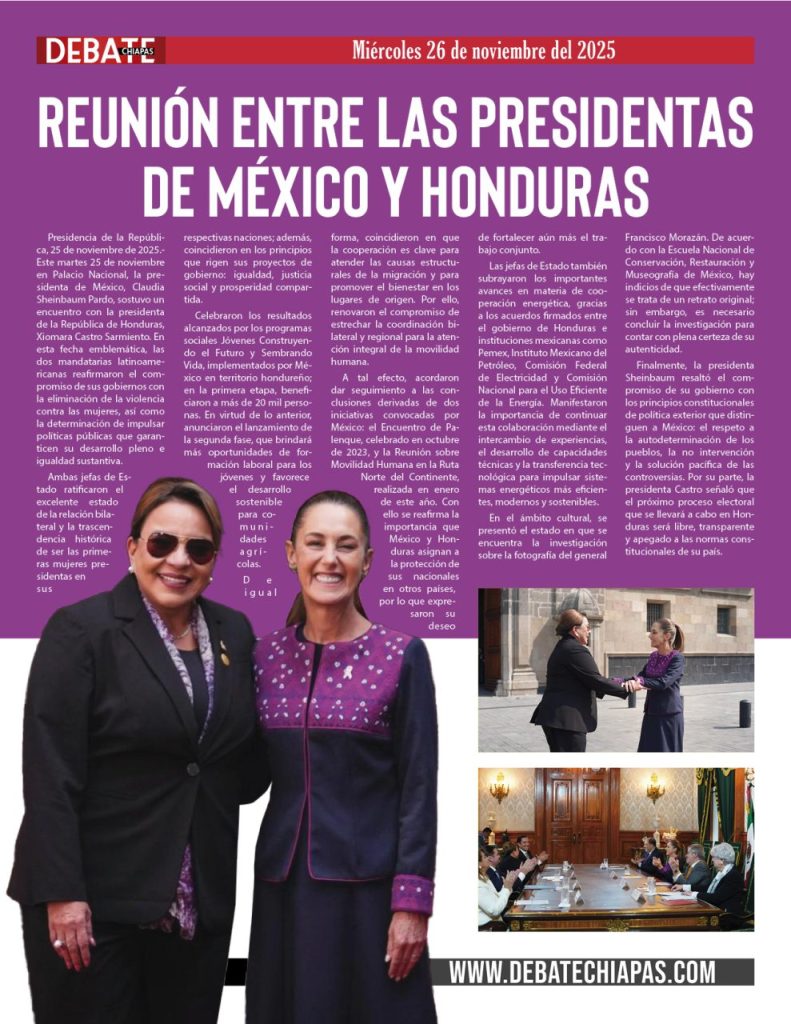 Las jefas de Estado también subrayaron los importantes avances en materia de cooperación energética, gracias a los acuerdos firmados entre el gobierno de Honduras e instituciones mexicanas como Pemex, Instituto Mexicano del Petróleo, Comisión Federal de Electricidad y Comisión Nacional para el Uso Eficiente de la Energía. Manifestaron la importancia de continuar esta colaboración mediante el intercambio de experiencias, el desarrollo de capacidades técnicas y la transferencia tecnológica para impulsar sistemas energéticos más eficientes, modernos y sostenibles.