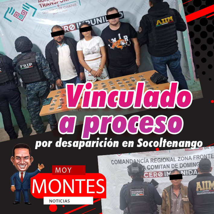 La Fiscalía General del Estado obtuvo la vinculación a proceso en contra de José “N”, Artemio “N”, Cinthia “N” y Claudio “N”, como presuntos responsables del delito de desaparición de persona cometida por particulares, en agravio de una persona del sexo masculino de identidad reservada, por hechos ocurridos el pasado 3 de noviembre de 2025, en el municipio de Socoltenango.