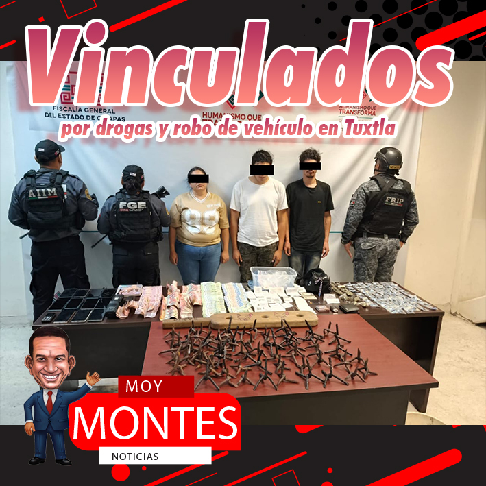 La Fiscalía General del Estado obtuvo la vinculación a proceso en contra de Cristian “N”, Felipe “N” y Yajaira “N”, los dos últimos originarios de Sinaloa, como presuntos responsables de los delitos de contra la salud, en su modalidad de posesión de cocaína y marihuana, así como traslado de vehículo con reporte de robo, en su modalidad de utilización para cometer otro delito, perpetrado en agravio de la sociedad y de quien o quienes resulten ofendidos, por hechos ocurridos en la colonia El Zoque de Tuxtla Gutiérrez.